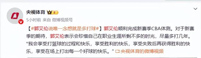 央视体育|【#郭艾伦说唯一念想就是多打球#】2025