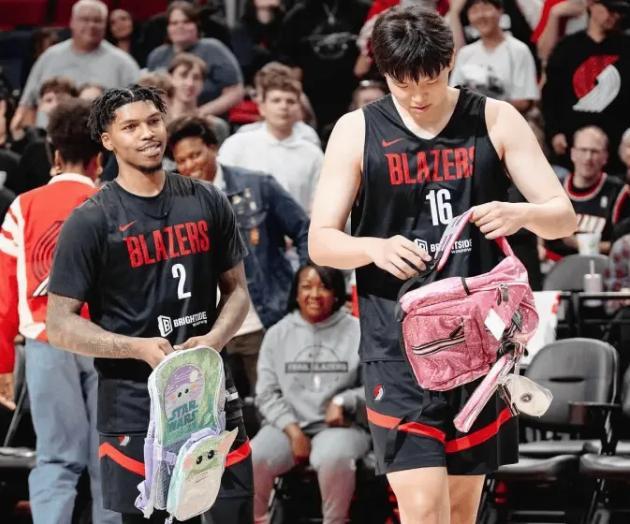 值得注意的是,杨瀚森的粉色小书包将会带一个赛季,表明他是一个新秀球员,这是NBA球队的传统。