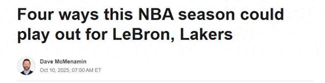 41岁詹姆斯除了退役外还能选什么?权威美媒ESPN晒出4种可能,其中包括签下3年1.88亿美元续合同约打到45岁再退役。