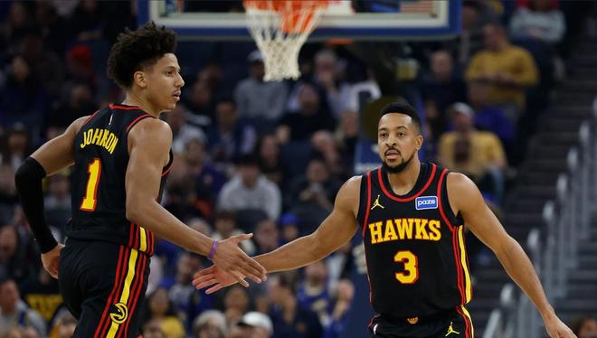 北京时间1月12日,NBA常规赛继续进行。勇士坐镇主场与老鹰展开对决,两大超人气球队的较量充满了看点。塞斯库里继续伤停,金州的首发五人依旧是德拉蒙德格林、穆迪、波斯特、吉米巴特勒与斯蒂芬库里。2连胜的勇士,志在延续强势表现。关于特雷杨的大交易之后,CJ麦科勒姆在此战迎来首秀,并替补出战。亚特兰大的首发五虎是杰伦约翰逊、奥孔武、丹尼尔斯、沃克与克雷伊奇,里萨谢、当特、波尔津吉斯伤停。麦科勒姆、丹尼尔斯与库里的强力后卫对决,巴特勒、格林与杰伦约翰逊的明星前锋较量,是此战的最大看点。