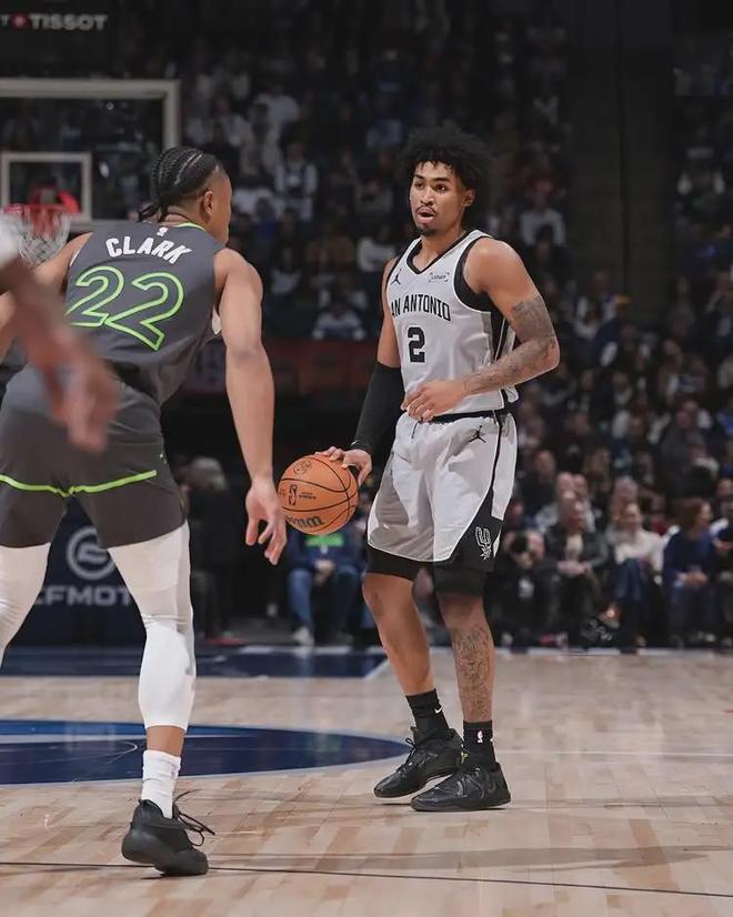 2025年选秀大会,当马刺用榜眼签选中哈珀,就有媒体担心三后卫共存问题。本赛季哈珀为马刺打了29场比赛,均是替补。场均出战21.1分钟,得到10.4分3.2篮板3.5助攻1抢断1.5失误,三项命中率:42.6%,24.7%,72.1%。