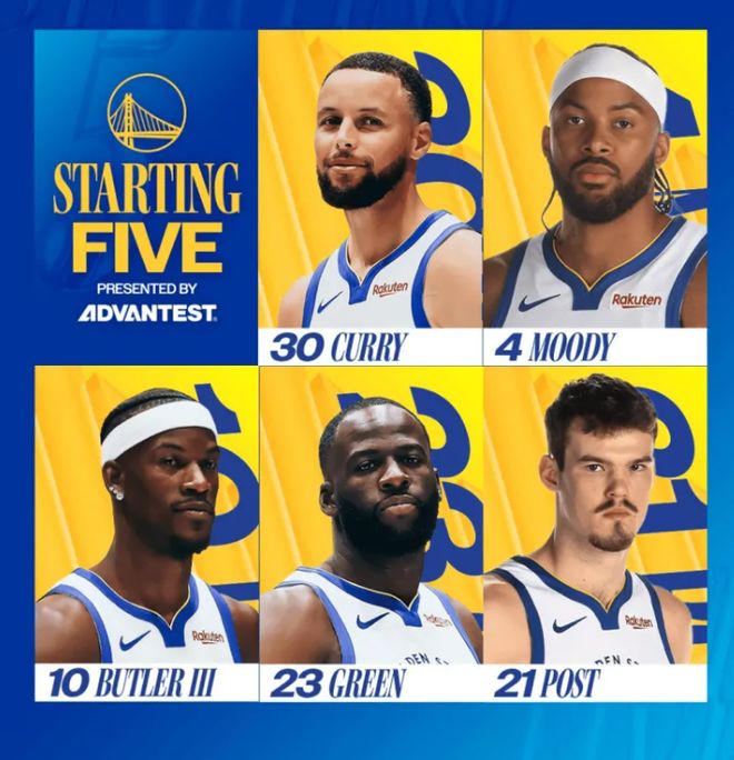 首发阵容方面,老鹰队这边,排出的最新首发五人组为:沃克、丹尼尔斯、克雷伊奇、约翰逊、奥孔古;勇士队这边,首发阵容则为:斯蒂芬-库里、摩西-穆迪、吉米-巴特勒、德雷蒙德-格林、昆滕-波斯特。